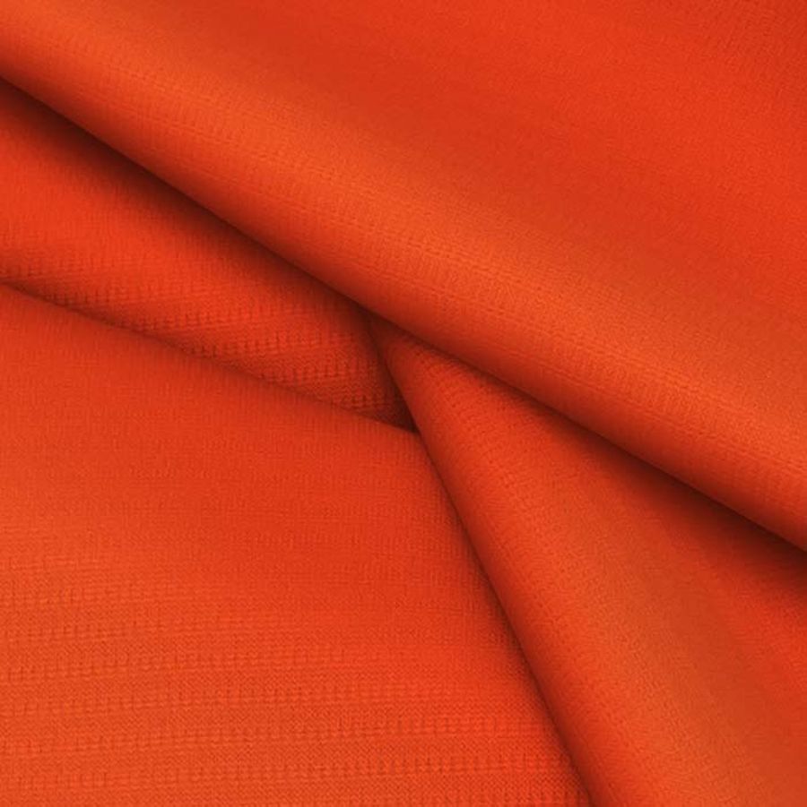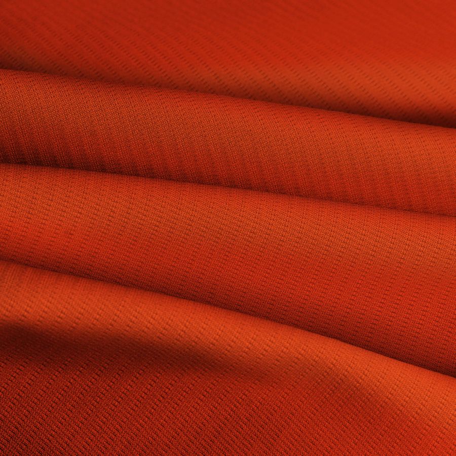 El color liso del tejido es rojo Annato, cuyos valores de tinta CMYK son 0-85-87-0. Este color está compuesto por una tonalidad roja cálida y vibrante, que aporta intensidad y vitalidad, junto con un toque de amarillo que le aporta una mayor luminosidad y brillo. Este color se combina perfectamente con tonalidades neutras como el blanco y el negro, así como también con tonalidades azules, verdes y marrones.