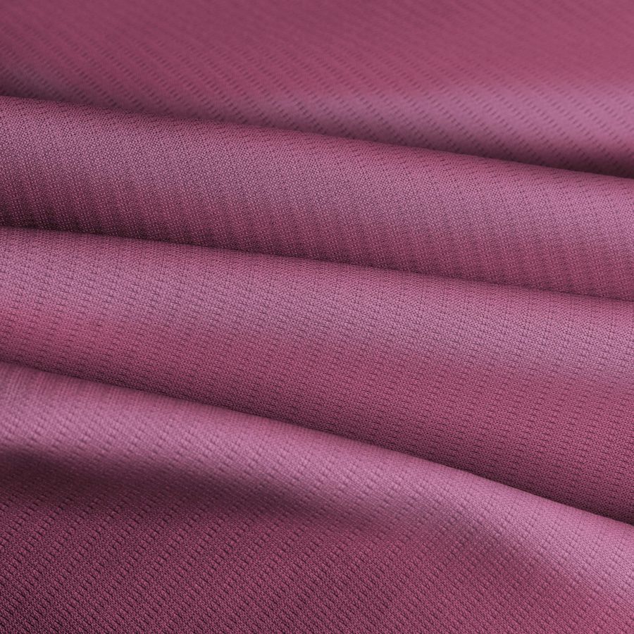 Este tejido base es el Tejido Técnico Transpirable - Fresh, con una composición del 100% POLIÉSTER y un gramaje de 135 gr/m2. El color liso impreso que se ha aplicado tiene un tono rojo guinda, obtenido gracias al uso de tinta cian en un 20%, tinta magenta en un 70%, tinta amarilla en un 22% y tinta negra en un 2%. Este color es versátil y se puede combinar con otros colores como el blanco, gris, negro y tonalidades marrones y doradas.