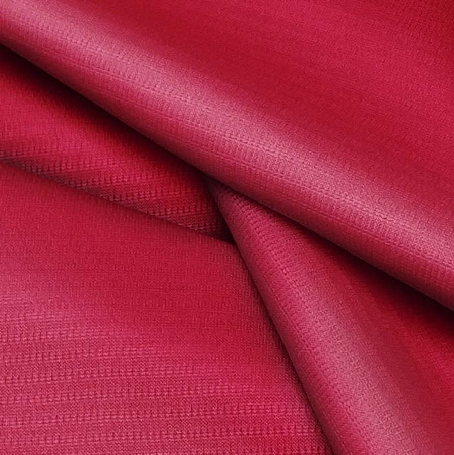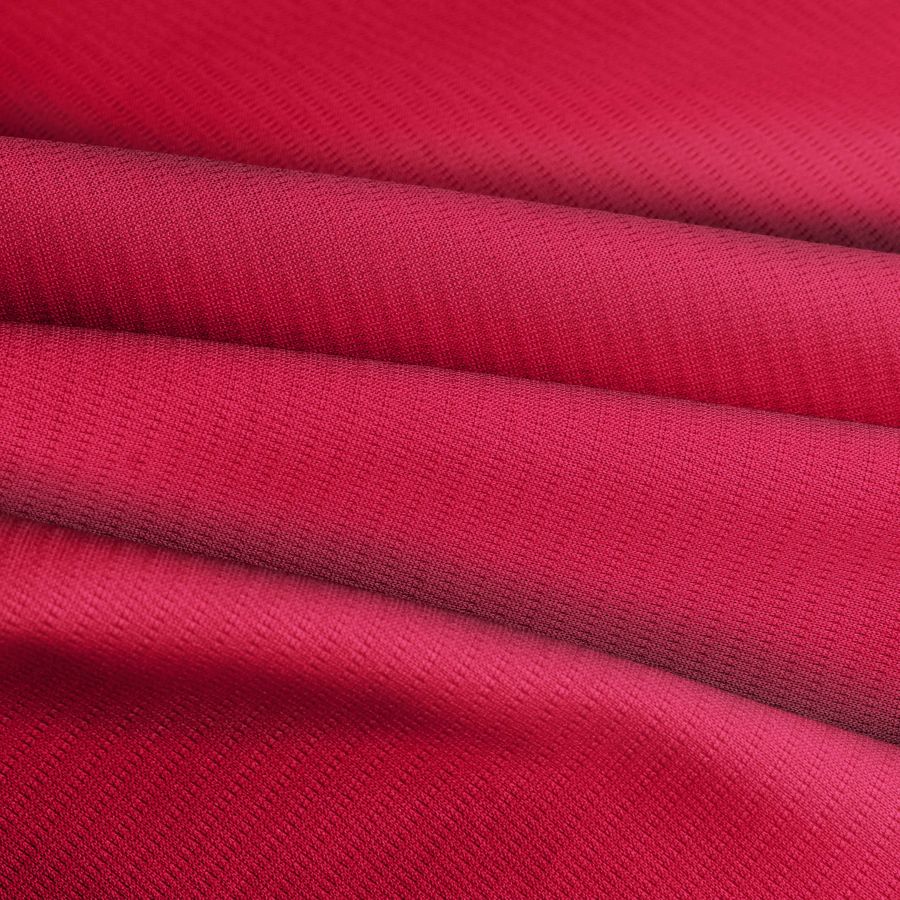 La tela base es el Tejido Técnico Transpirable - Fresh, compuesta al 100% de poliéster, con un gramaje de 135 gr/m2, un ancho de 150 cm y de color liso rojo vino tinto con un CMYK de 12 100 73 3. Este color es una mezcla perfecta entre el rojo y el morado, incorporando la profundidad y emoción del primero, y la elegancia y sofisticación del segundo. El rojo vino tinto combina excepcionalmente bien con tonos de gris, tonos amarillos y verdes. La tela es impresa con el color liso a una sola cara por medio de impresión digital textil.