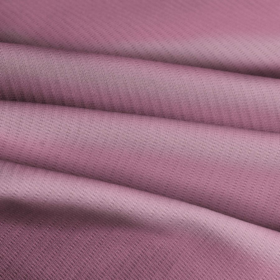 La tela base es el Tejido Técnico Transpirable - Fresh de 100% poliéster con un gramaje de 135 gr/m2 y una anchura de 150 cm. El color liso impreso es de tonalidad rosa amaranto, con un CMYK de 0 51 7 0 y se imprime digitalmente a una sola cara. La tela presenta un acabado transpirable con textura y tacto elástico.