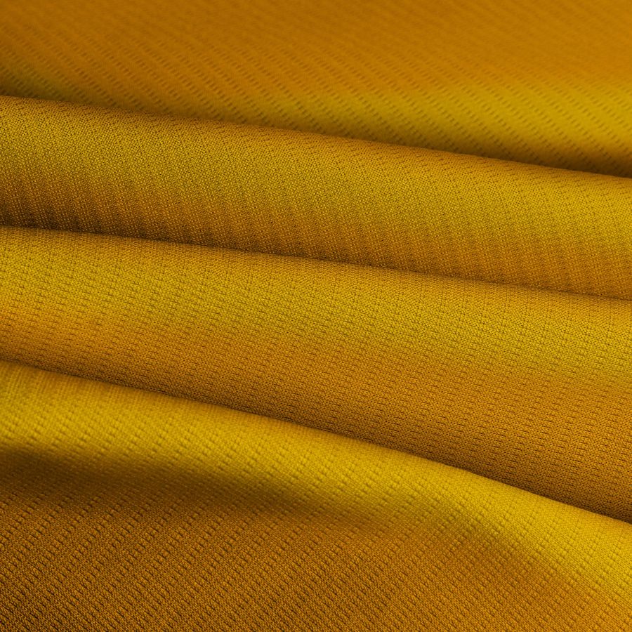 La tela base es un tejido técnico transpirable de poliéster con un gramaje de 135 gr/m2 y un ancho de 150 cm, ideal para prendas deportivas como camisetas. El color impreso es un vibrante albaricoque claro con tintas CMYK de 0 48 93 0, lo que le da una sensación de calidez y frescura. Este color se combina especialmente bien con tonos neutros como blancos, grises y cremas, así como con colores azules y verdes claros.
