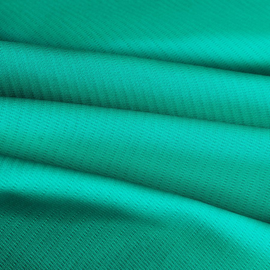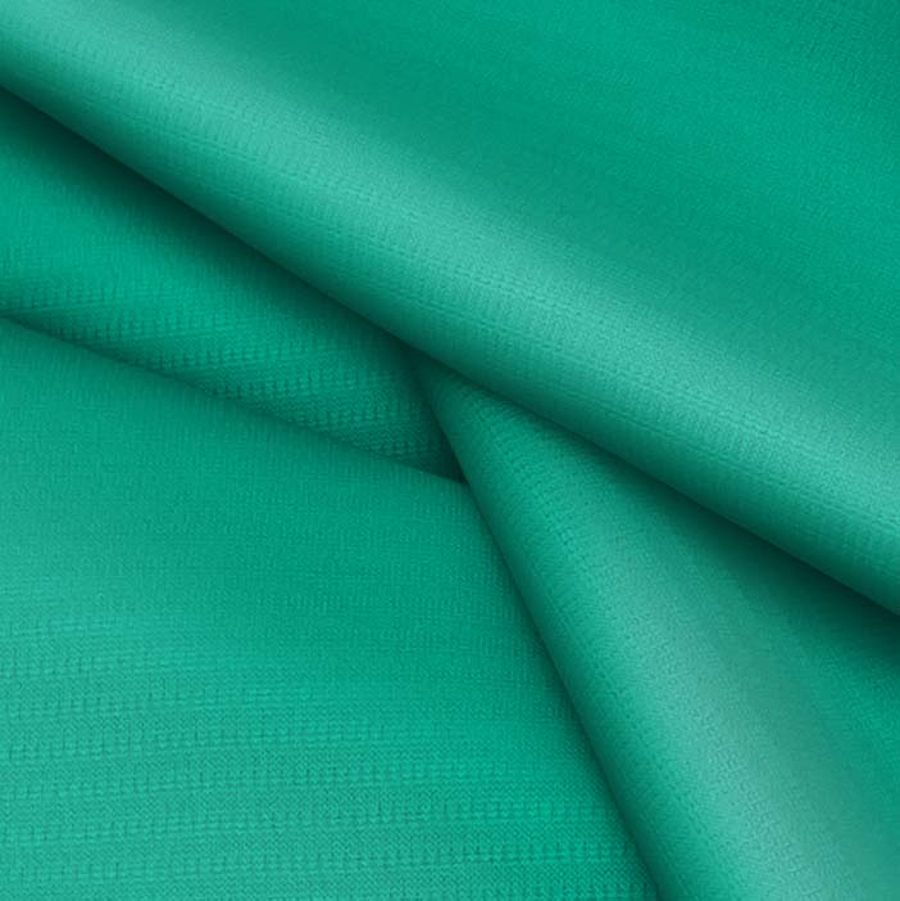 La tela base del tejido técnico transpirable - Fresh, de 100% poliéster, presenta un gramaje de 135 gr/m2 y una anchura de 150 cm. Su color liso impreso es un verde acuático, con un CMYK de 82 16 62 2, lo que indica una predominancia del cian y una mínima presencia de negro. Este color transmite frescura, vitalidad y equilibrio, y combina muy bien con tonos naturales como el beige y el gris, así como con el blanco y el negro para contrastes más marcados.
