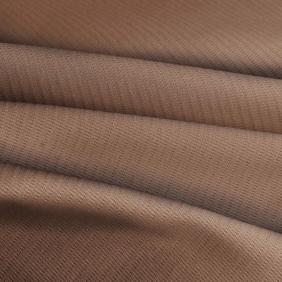 La tela base es el tejido técnico transpirable Fresh, compuesto al 100% de poliéster, con un gramaje de 135 gr/m2 y un ancho de 150 cm. El color liso impreso es un marrón canela, representado en el CMYK con 35 de cian, 55 de magenta, 61 de amarillo y 39 de negro. Este color secundario es cálido y sofisticado, ideal para dar un toque elegante a cualquier prenda. Complementa muy bien con tonos tierra, beige, dorado y verde oliva.
