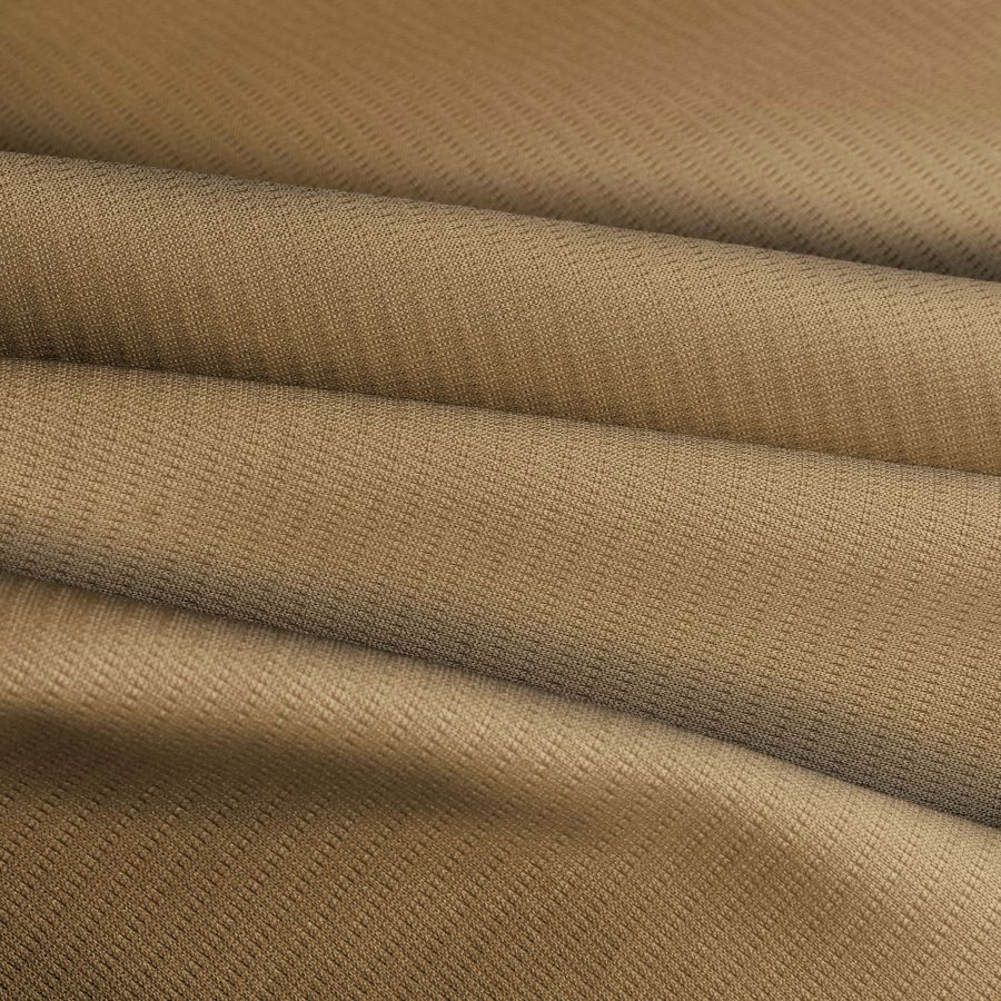 La tela base, Tejido Técnico Transpirable - Fresh, está fabricada completamente en poliéster con un gramaje de 135 gr/m2 y un ancho de 150 cm. El color liso impreso es de un tono marrón cigarro puro, con una composición de tinta de cian (33), magenta (46), amarillo (71) y negro (28), lo que da como resultado un CMYK de 33 46 71 28. El color se mezcla sutilmente con un toque de tonos marrones claros, lo que transmite una sensación de elegancia y sofisticación. El color secundario que destacamos es un tono cálido y suave, cercano al beige claro, que combina perfectamente con tonos claros como el blanco, crema o beige y también con colores más oscuros como el negro o marrón chocolate.