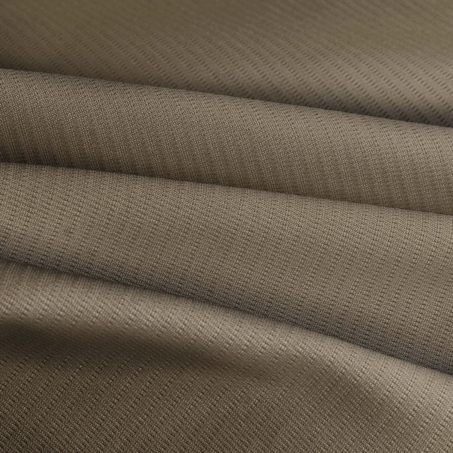 Esta tela base es el Tejido Técnico Transpirable - Fresh, con una composición de 100% Poliéster y un gramaje de 135 gr/m2. Su ancho de tela es de 150 cm y su cuidado debe ser hecho sin blanqueadores, a una temperatura máxima de 60ºC, planchando a baja temperatura y evitando el lavado seco o secadora. En cuanto a su color liso impreso, es de un color marrón corteza con tonalidades de Cyan, Magenta, Yellow y Black en un CMYK 47 48 63 43. Este color marrón corteza, que es un color secundario, puede ser descrito como una combinación equilibrada de varias tonalidades, lo que le da una sensación de calma y estabilidad. Combina perfectamente con colores terrosos como el verde musgo, el gris claro y los beiges cálidos.