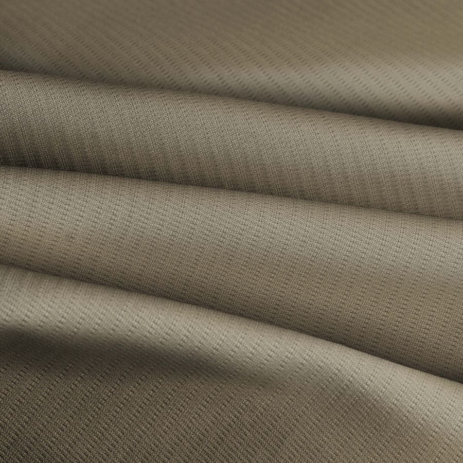 La tela base Tejido Técnico Transpirable - Fresh, está compuesta al 100% de poliéster, con un gramaje de 135 gr/m2 y un ancho de 150 cm. El color liso impreso en esta tela es una combinación de Marrón y Gris Pasto, con los valores de tinta CYMK de 35, 34, 51 y 16 respectivamente, formando un color elegante y sofisticado, ideal para prendas de vestir deportivas o para productos que requieran de un aspecto técnico y moderno. Este color secundario combina muy bien con otros colores neutros como el negro, así como con verdes o beige claro.