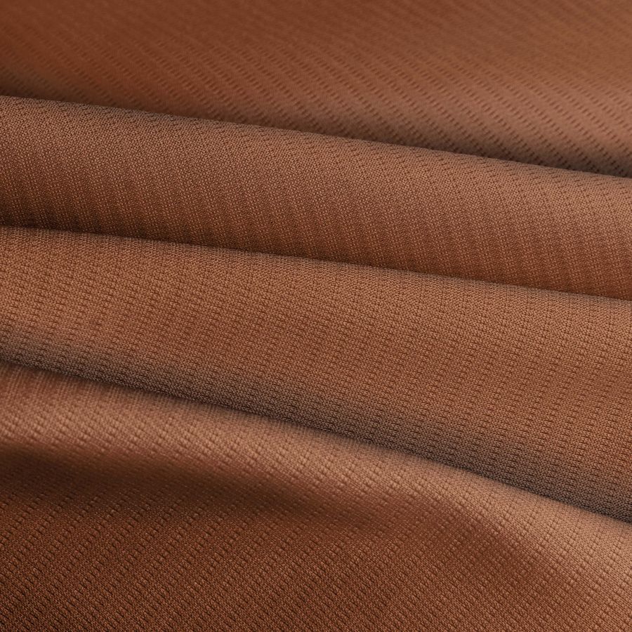 La tela base del tejido técnico transpirable Fresh es de composición 100% poliéster con un gramaje de 135 gr/m2 y un ancho de 150 cm. El color liso impreso es un marrón con nomenclatura Momia, que se obtiene a través de los siguientes valores de CMYK: 34 71 83 42.