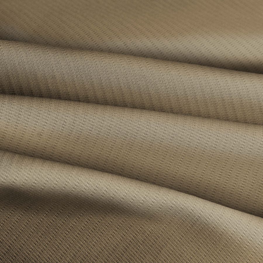 La tela base de este tejido es el Tejido Técnico Transpirable - Fresh de 100% poliéster, con un gramaje de 135 gr/m2 y un ancho de 150 cm. El color liso impreso es un Marrón Ocre con una combinación de tinta Cyan de 26, Magenta de 33, Yellow de 53 y Black de 12, lo que resulta en un CMYK de 26 33 53 12.