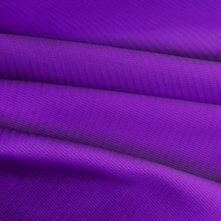 La tela base, Tejido Técnico Transpirable - Fresh, tiene una composición del 100% de poliéster y un gramaje de 135 gr/m2. Su ancho es de 150 cm y tiene una tecnología de impresión por sublimación. El color liso impreso es de un hermoso tono morado, purple strong, con un contenido de tinta Cyan del 80% y Magenta del 93%, mientras que las tintas Yellow y Black se mantienen en 0%. El resultado es un color vibrante y brillante lleno de vida y energía.