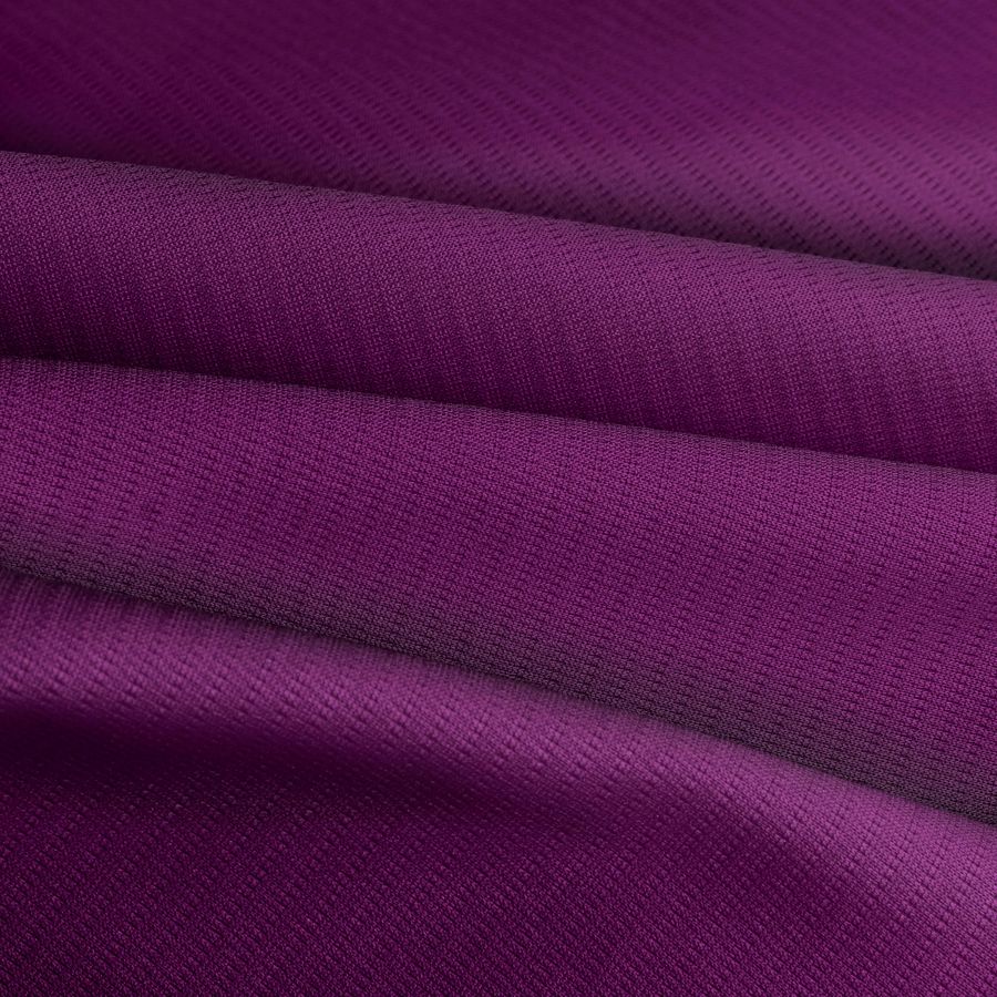 El Tejido Técnico Transpirable - Fresh es una tela técnica con una composición al 100% de poliéster. Su peso es 135 gr/m2 y tiene un ancho de 150 cm. El color liso impreso en esta tela es un tono de Morado Púrpura de Tiro, que se compone de un 70% de tinta cian, 100% de tinta magenta, 33% de tinta amarilla y 47% de tinta negra (CMYK: 70 100 33 47). Este color secundario es simbólicamente asociado a la creatividad y la originalidad, representando la imaginación y la sabiduría. A nivel técnico, este color liso se combina bien con tonos de gris claro, blanco y azul marino.