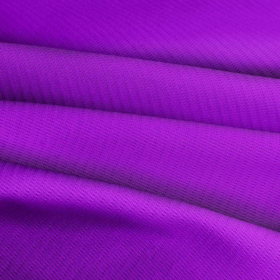 La tela base del producto es conocida como Tejido Técnico Transpirable - Fresh, de 100% poliéster y un gramaje de 135 gr/m2. El color liso impreso en la tela es de tonalidad morado con tintes de violeta oscuro, con un CMYK de 70 85 0 0, según los datos proporcionados. Este color emite una sensación de misterio y sofisticación, y se combina bien con tonos grises, blancos y azules. La tela está impresa con el color liso a una sola cara por impresión digital textil, y cabe destacar que no se trata de un tejido tintado sino impreso por una sola cara.