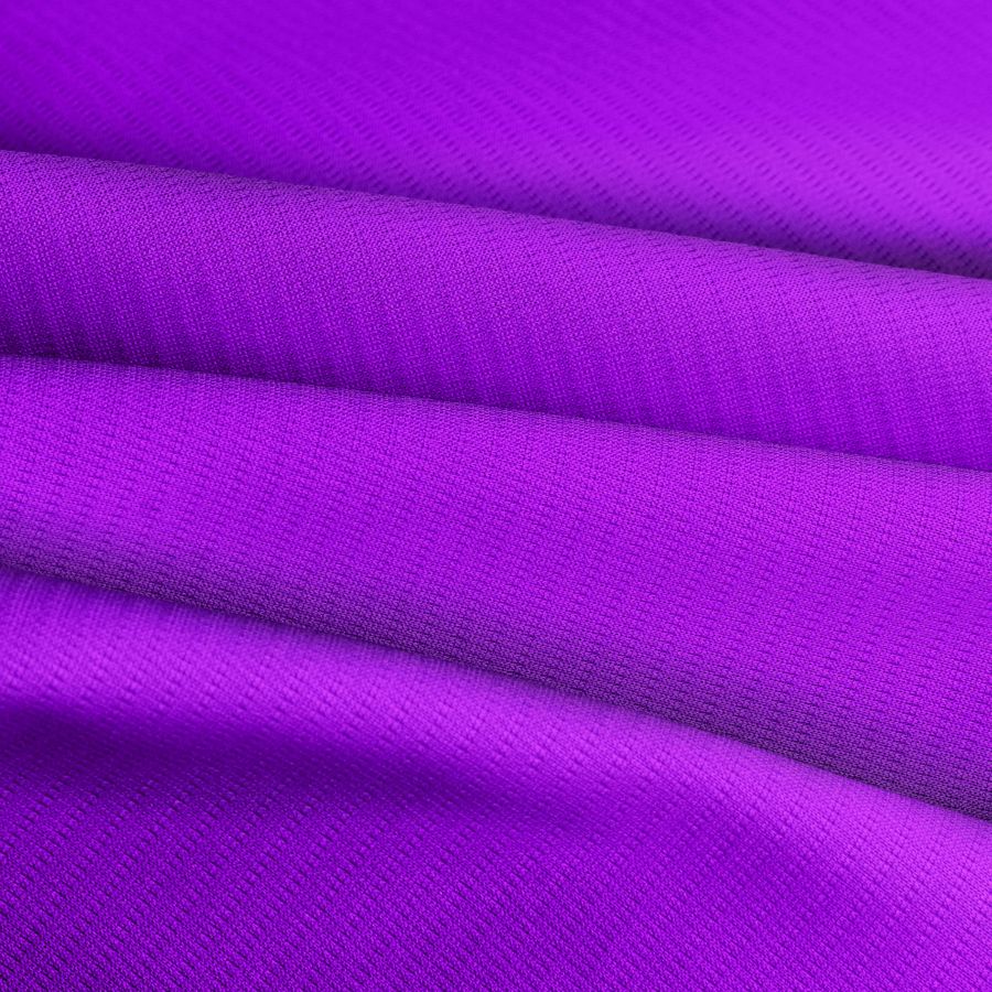 La tela base Tejido Técnico Transpirable - Fresh, compuesta al 100% de poliéster, tiene un gramaje de 135 gr/m2 y un ancho de 150 cm. El color liso impreso es Morado Vivid Violeta, que se obtiene mediante el uso de tinta cian y magenta, sin tinta amarilla ni negra (CMYK: 72 81 0 0). Este color evoca la creatividad y la originalidad, y combina bien con otros tonos de púrpura, así como con colores complementarios como el verde, el amarillo y el rosa.