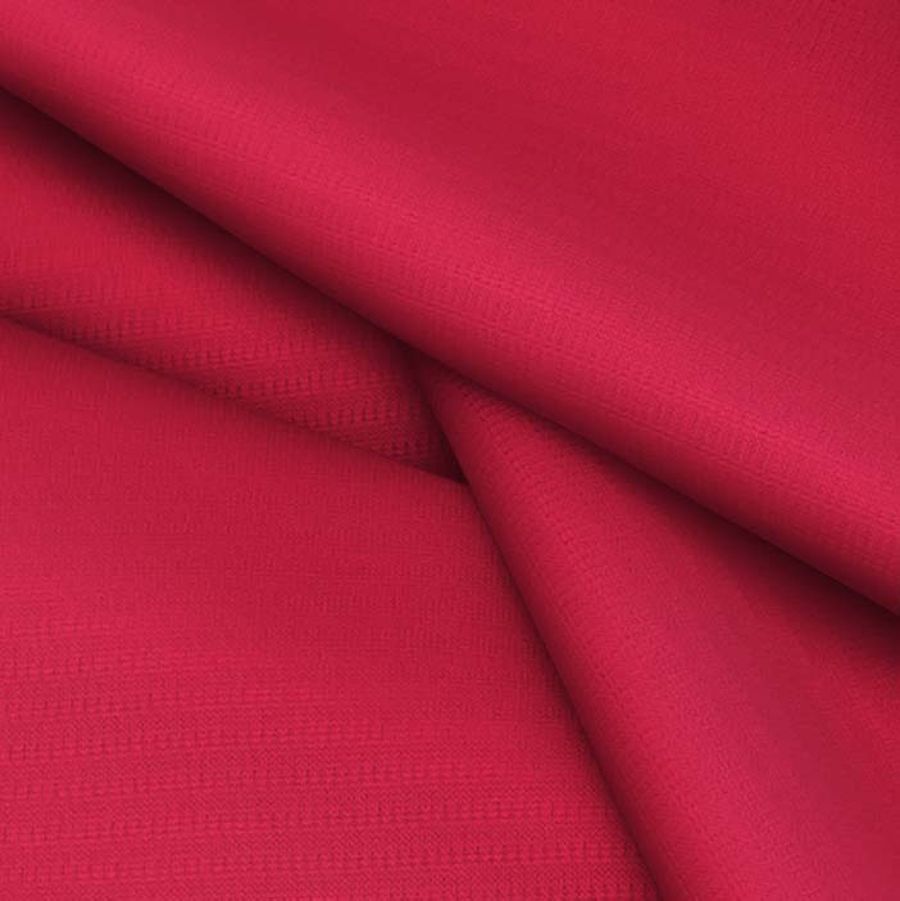 La tela base es Tejido Técnico Transpirable - Fresh en color blanco con una composición de 100% poliéster y gramaje de 135 gr/m2, con un ancho de 150 cm. El color liso impreso es Rojo-Burdeos con un CMYK de 16 98 71 6. Este color se describe como intenso y oscuro, perfecto para proyectos de moda que requieran un toque de elegancia. Combina perfectamente con tonos beige, grises y azules oscuros. Este tejido se imprime con el color liso a una sola cara por impresión digital textil, lo que significa que no es un tejido tintado sino impreso por una sola cara.