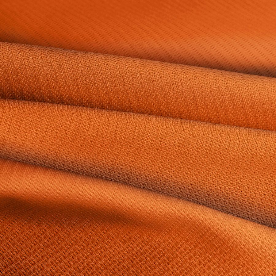 El Tejido Técnico Transpirable - Fresh es una tela de poliéster transpirable con un gramaje de 135 gr/m2 y un ancho de 150 cm. El color liso impreso en esta tela es un vibrante naranja coquelicot, con un CMYK de 1 78 100 0. Este color secundario se caracteriza por su intensidad y fuerza, lo que lo convierte en una excelente opción para prendas deportivas, en combinación con otros tonos llamativos como el azul marino o el negro.