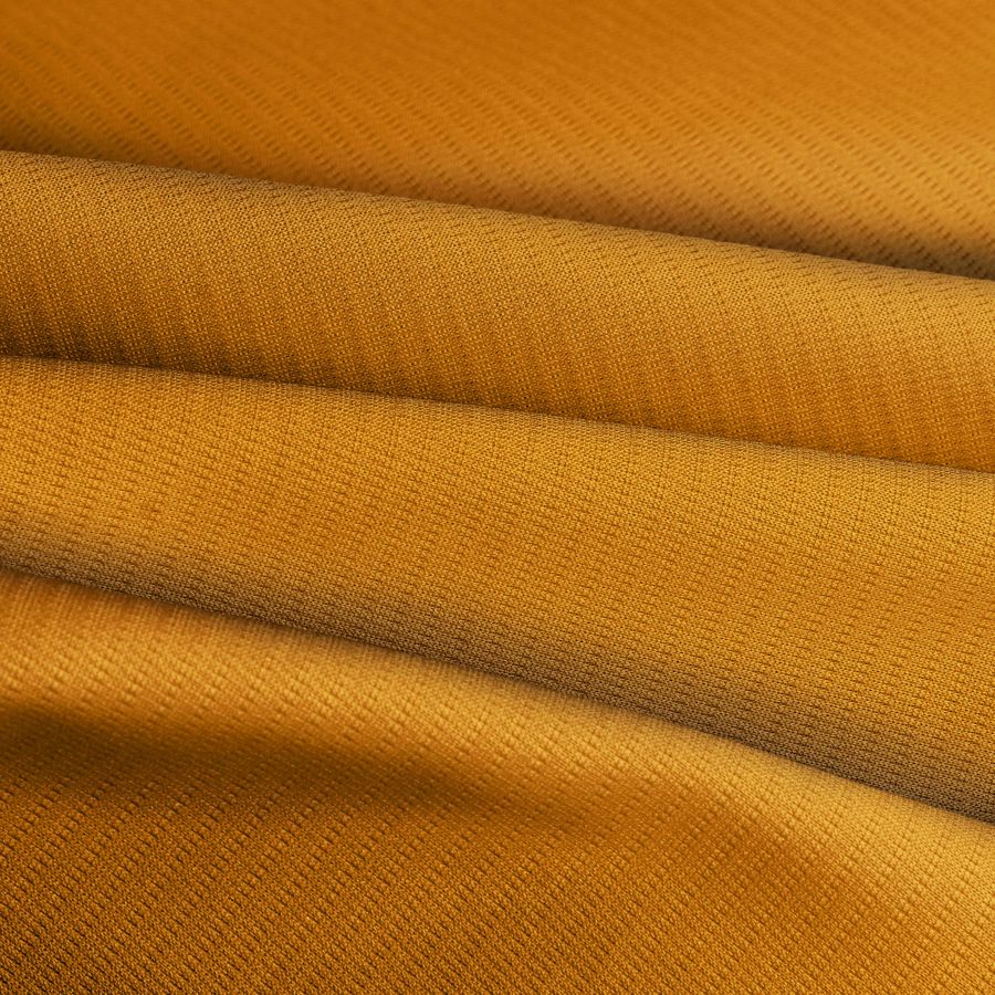 La tela base del producto es el Tejido Técnico Transpirable - Fresh de 100% poliéster, con un gramaje de 135 gr/m2 y un ancho de 150 cm. El color liso impreso es Naranja Quemado, con una mezcla de tintas de Cyan 17, Magenta 62, Yellow 100 y Black 6, lo que da como resultado el perfil de color CMYK de 17 62 100 6. Este color secundario es un tono cálido y profundo que transmite energía y vitalidad, además de ser muy versátil para combinarse con otros colores como el blanco, gris, azul o verde.