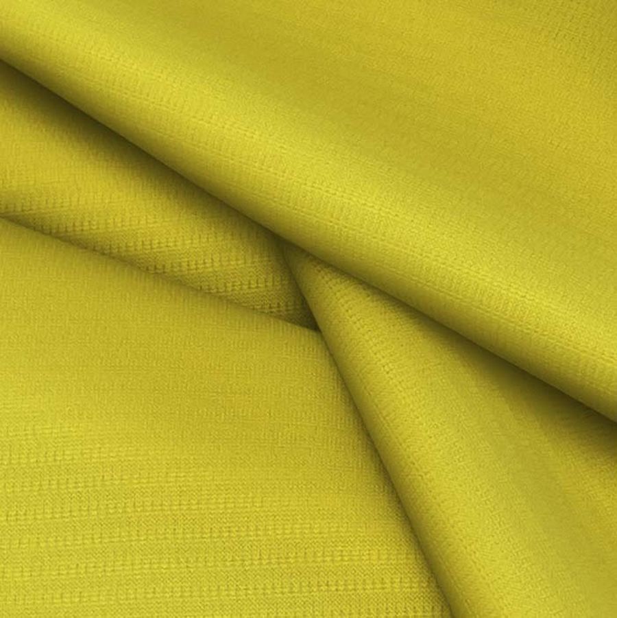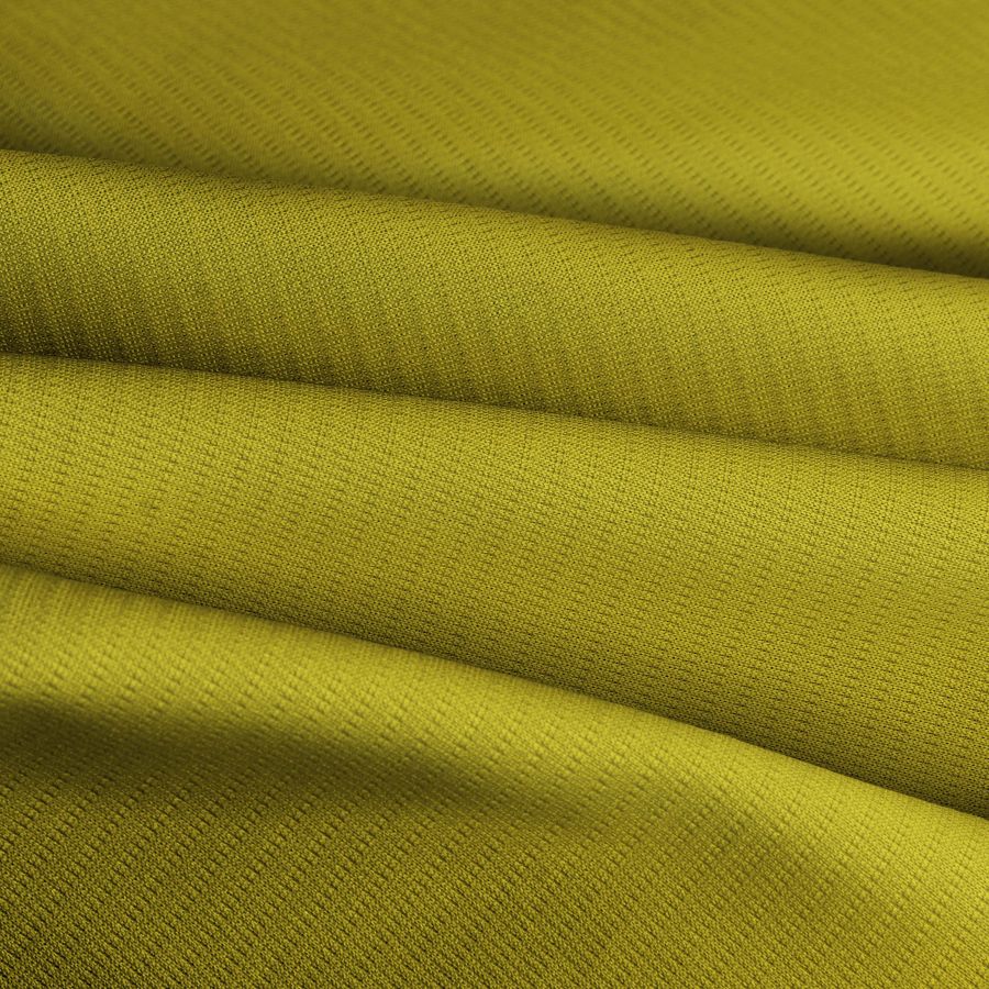 El tejido base es el Tejido Técnico Transpirable - Fresh, con una composición 100% poliéster, peso de 135 g/m2 y ancho de 150 cm. El color liso impreso en este tejido es Amarillo Bambú, con un CMYK de 22 19 91 3. Este color transmite frescura y energía, combinando perfectamente con colores como el verde, el azul y el blanco. La tela está impresa en una sola cara por impresión digital textil, asegurando una excelente calidad y durabilidad. El acabado es transpirable y la textura es elástica al tacto.