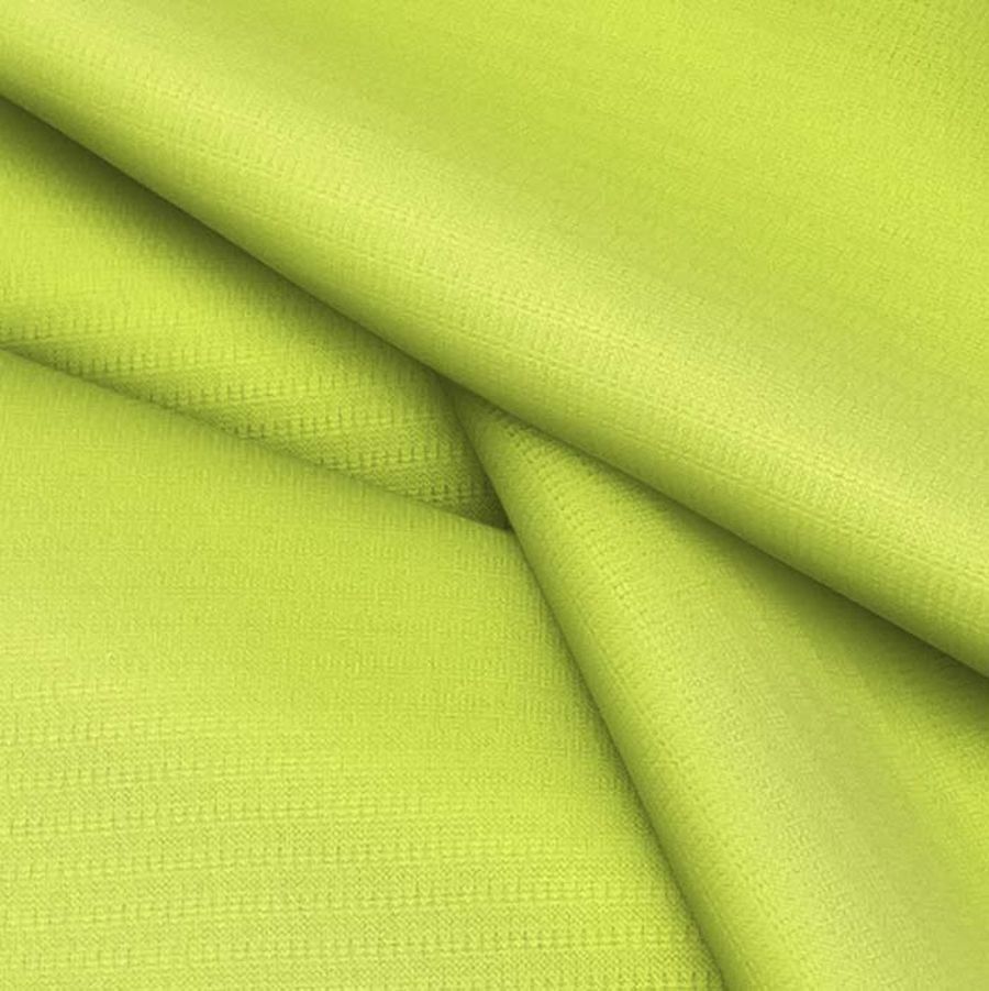 Este tejido técnico transpirable - Fresh cuenta con una composición 100% poliéster y un gramaje de 135 gr/m2. Su ancho es de 150 cm y posee características de acabado transpirable y textura elástica al tacto. El color liso impreso en este tejido es un amarillo muy vibrante, similar a una pelota de tenis, con una tinta cyan del 22 y una tinta amarilla del 83. Este color puede combinarse idealmente con tonos verdes y azules, creando un efecto deportivo y energético. El tejido está impreso a una sola cara por impresión digital textil.