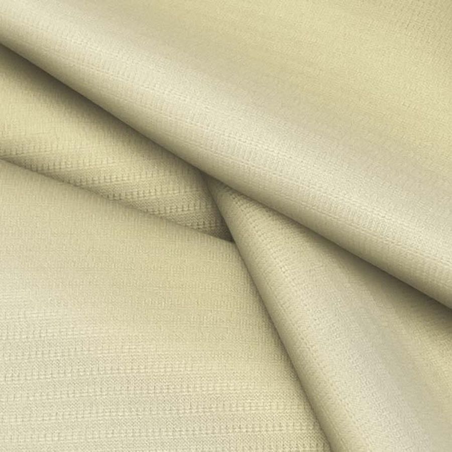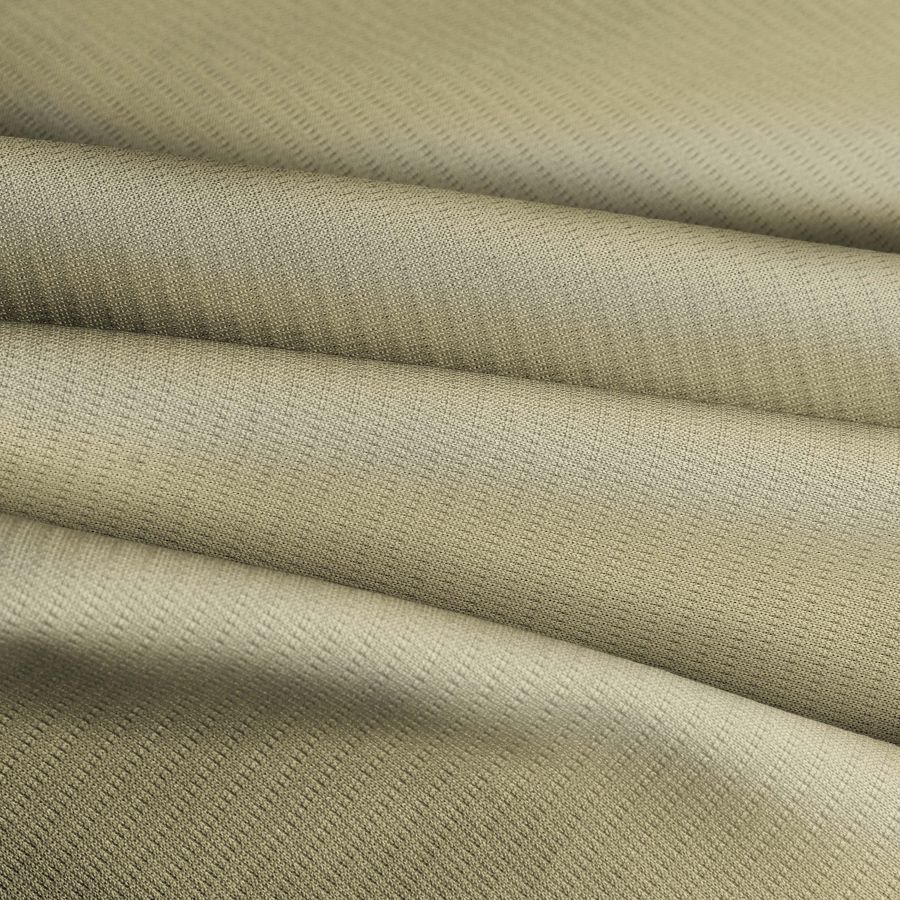 La tela base es un tejido técnico transpirable conocido con el nombre de Fresh, compuesto por 100% poliéster, con un gramaje de 135 gr/m2 y un ancho de 150 cm. El color liso impreso es un amarillo primaveral representado por una combinación de tintas CYMK con los siguientes valores: 6 en Cyan, 7 en Magenta, 41 en Yellow y 0 en Black. Este color primaveral se caracteriza por su luminosidad y alegría que transmite.